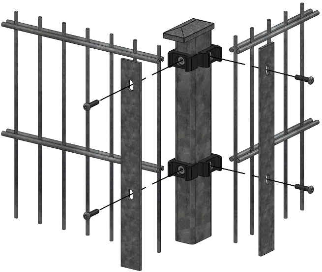 Eckpfosten 60 x 60 mm mit Flacheisen und Edelstahl Schrauben