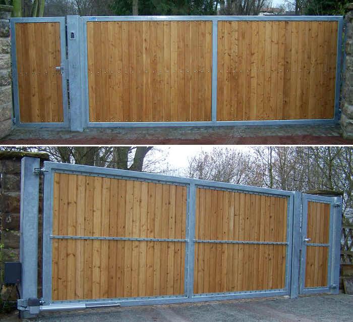 Industrietor Kombianlage feuerverzinkt mit Holzfüllung und Torantrieb - Breite 5500 mm
