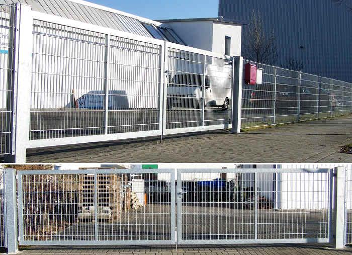 Doppelstabmatten Zaunsystem feuerverzinkt - Höhe 1400 mm mit Industrietor - Breite 6000 mm
