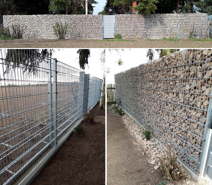 Gabionen Steinmauer mit integriertem Basictor und Rasenborden