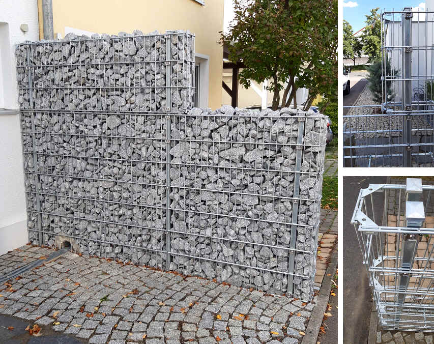 Sonderanfertigung - Gabionen Steinmauer komplett aus Metall mit ALU Abdeckkappen, ALU Auflageböcken und Endstücke