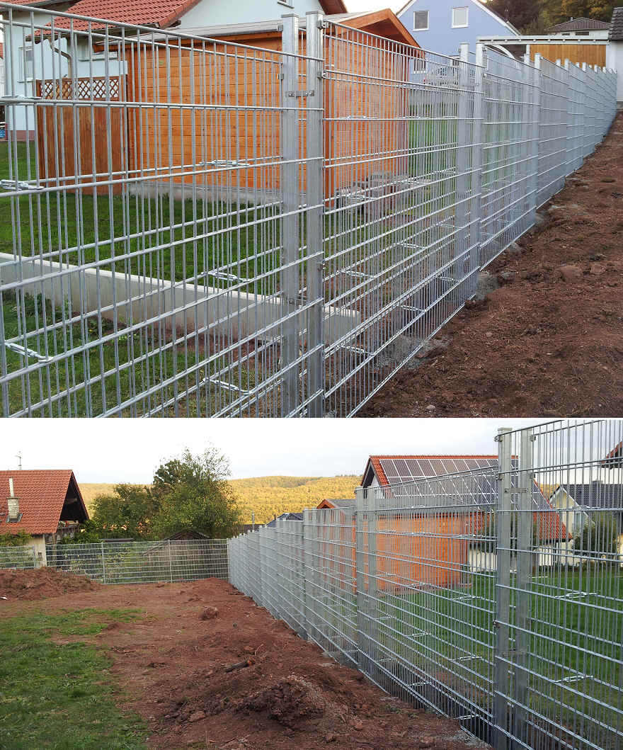 Gabionen Steinmauer mit Geländesteigung in Stufenform und 90° Ecklösung