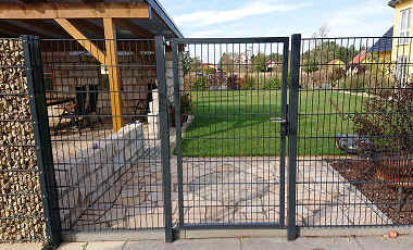 | Zaunanschluss: 3 Winkel mit Gegenplatte je Pfosten zur |